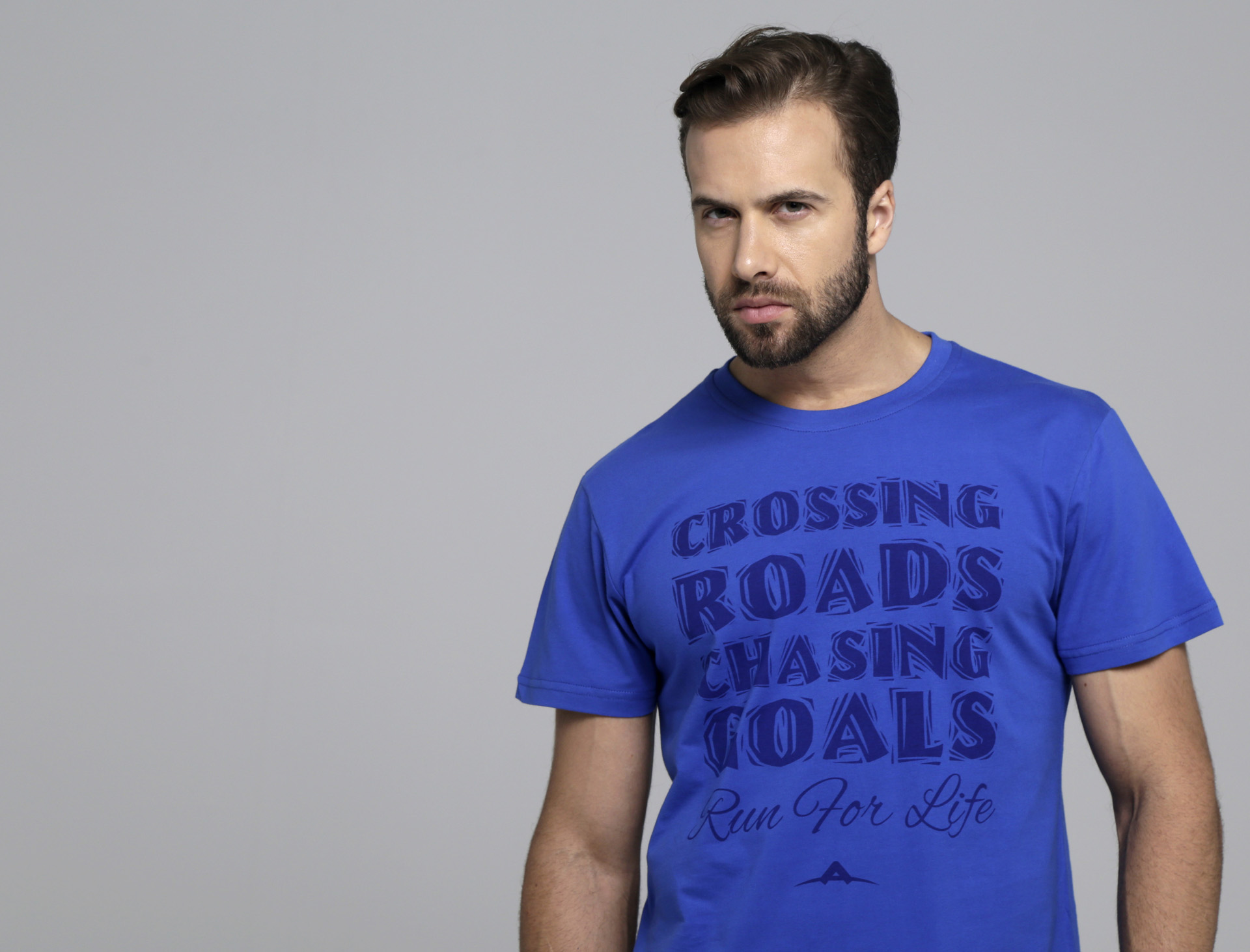 JERSEY DE ALGODÓN Remera básica manga pegada.- Cuello redondo. - Limpieza de cuello al tono. - Estampa central. - Marca bordada trasera.