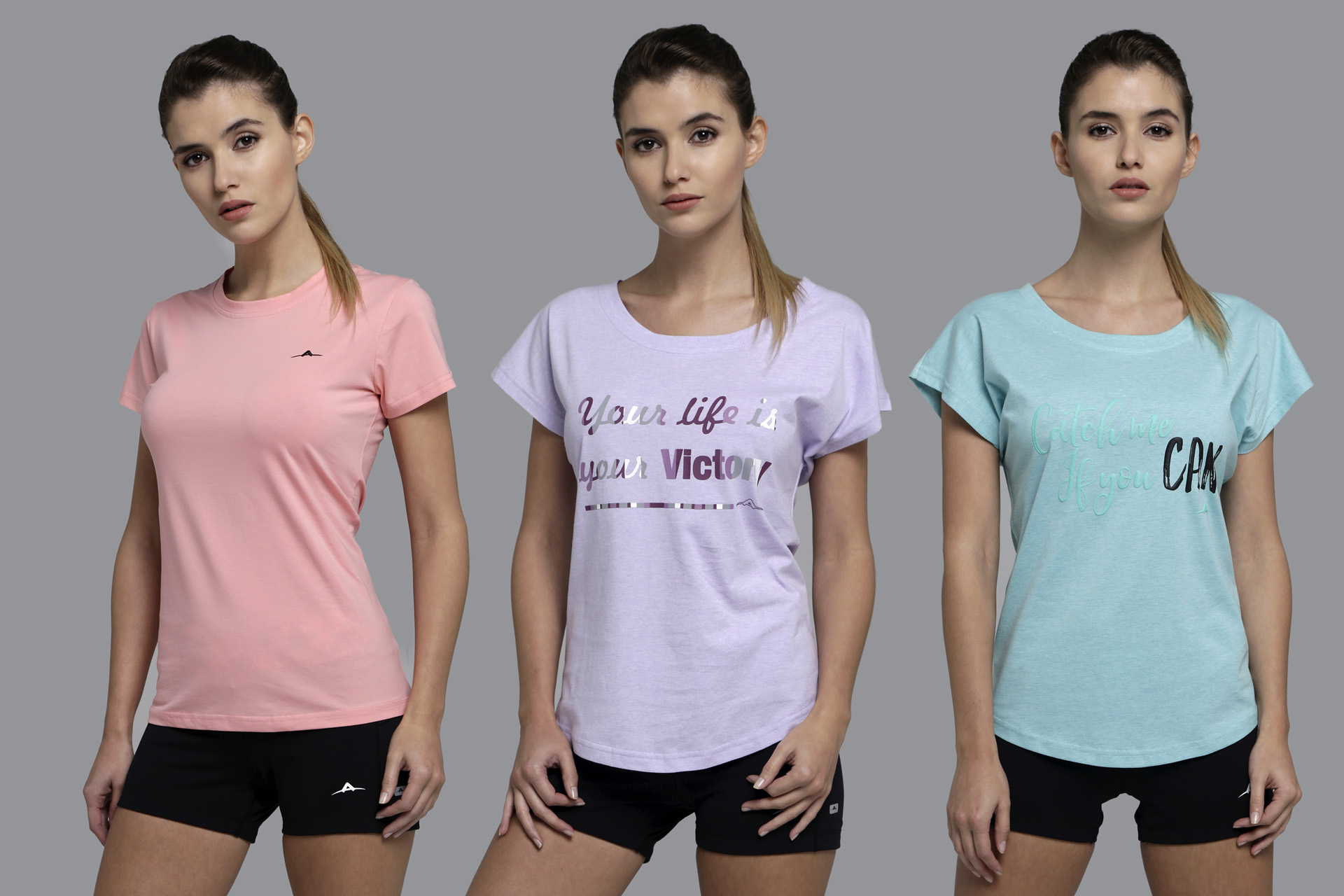 NYLON C/SPANDEX/ FANTASÍA Musculosa combinada con tela fantasía y detalles de costuras flatseammer · Remera manga corta técnica básica · Remera manga corta técnica con estampa central.